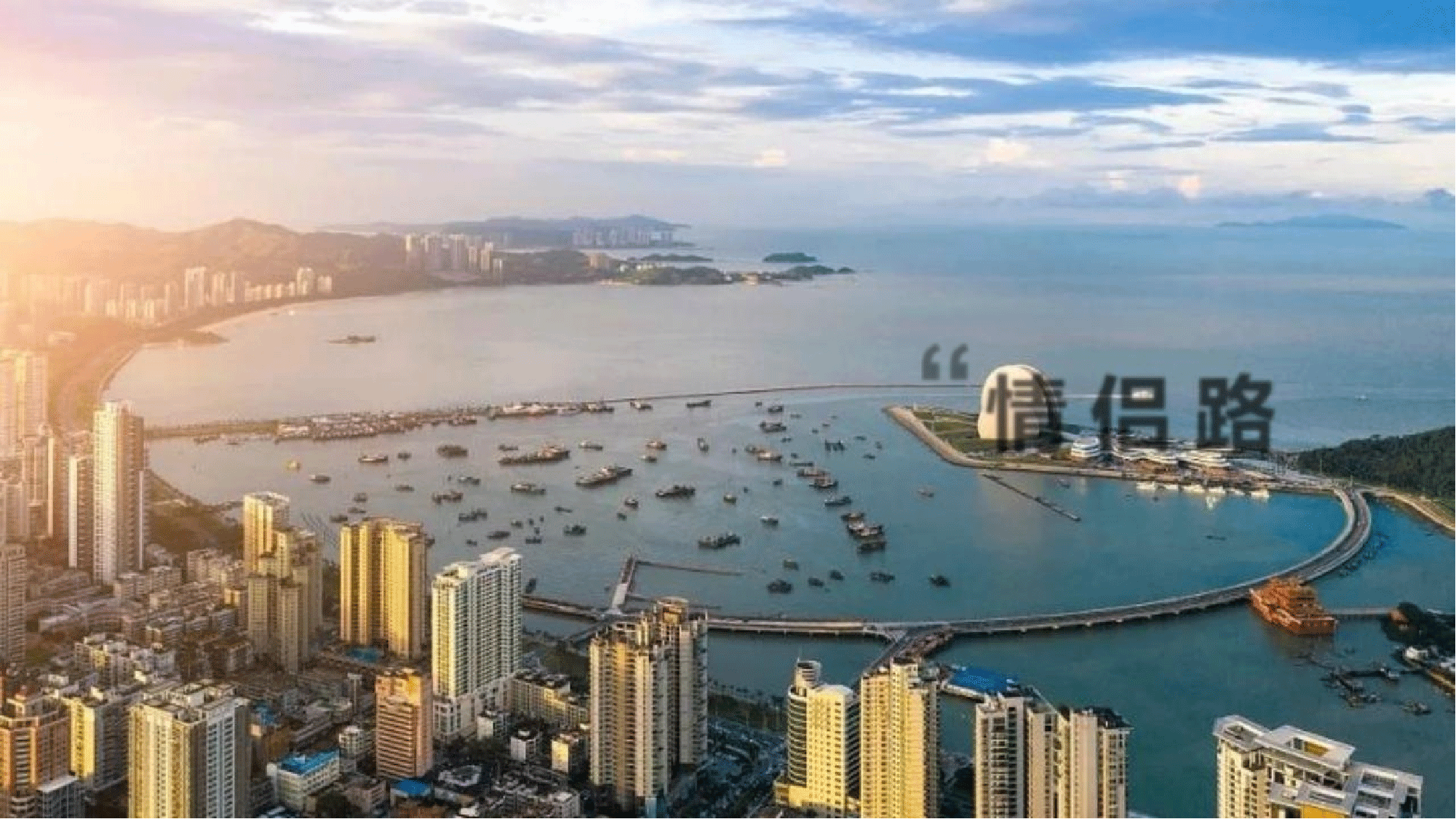 是珠海的一大看点, 珠海城市的标志性建筑之一。近岸的地方有许多小海岛和大礁石, 对着岸上的大山近看是一片绿色的海洋, 十分漂亮,沿途欣赏。