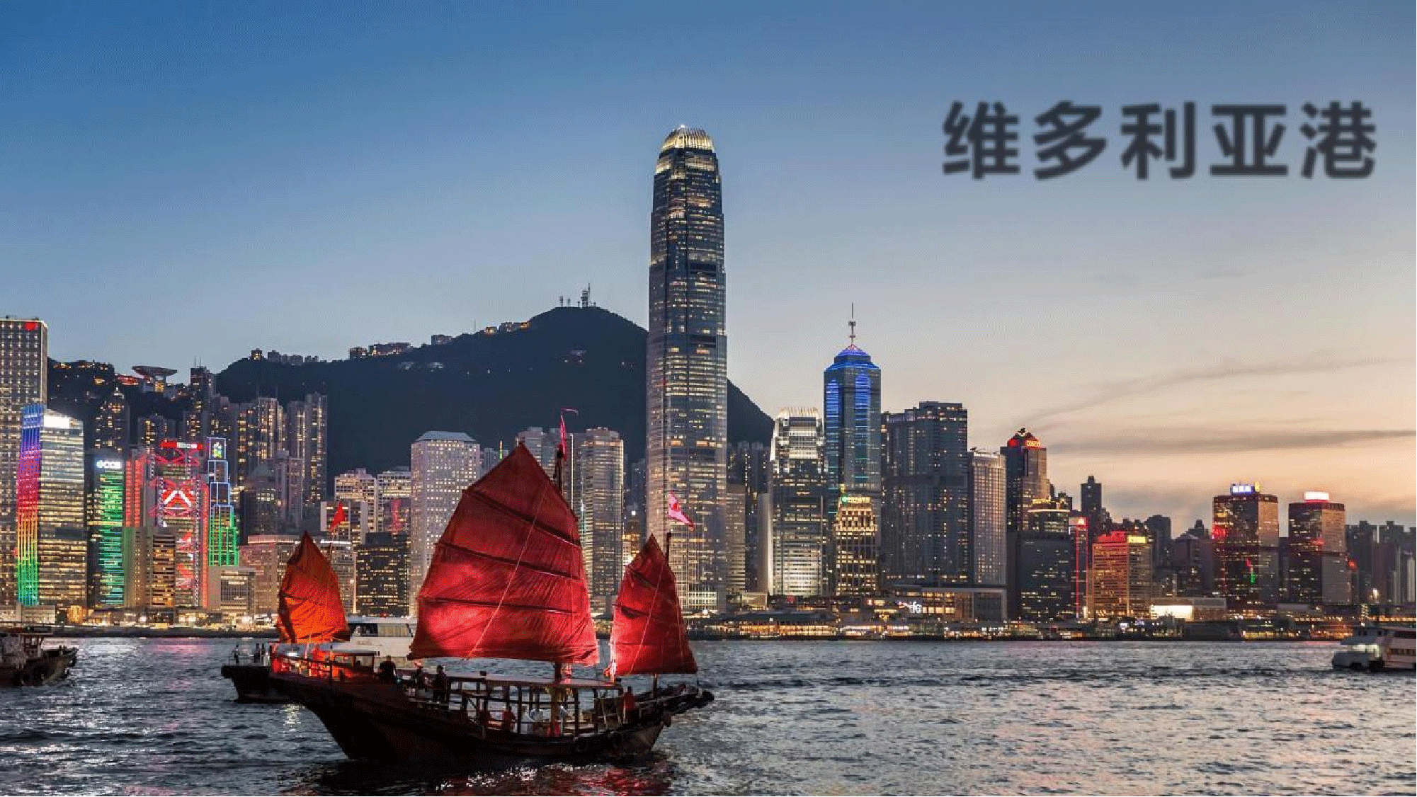 维多利亚港水面宽阔, 景色迷人, 每天日出日落, 繁忙的渡海小轮穿梭于南北两岸之间, 渔船、 邮轮、 观光船、 万吨巨轮和它们鸣放 的汽笛声, 交织出一幅美妙的海上繁华景致。