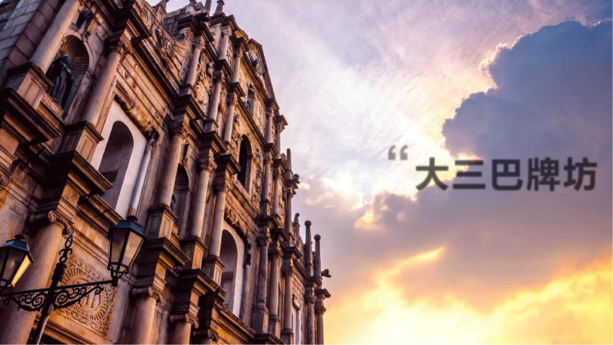 大三巴牌坊的雕刻和镶嵌较为精细, 融合了东西方建筑艺术的精华, 是一个中西文化交融的艺术品。